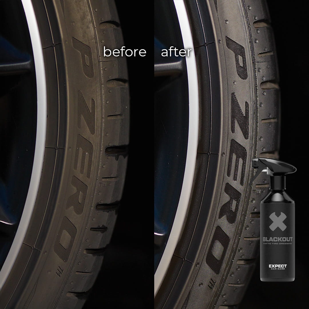 Cheap tire shines don’t protect and leave a shiny finish. Blackout protects your tires from cracking, and gives them a rich matte satin finish